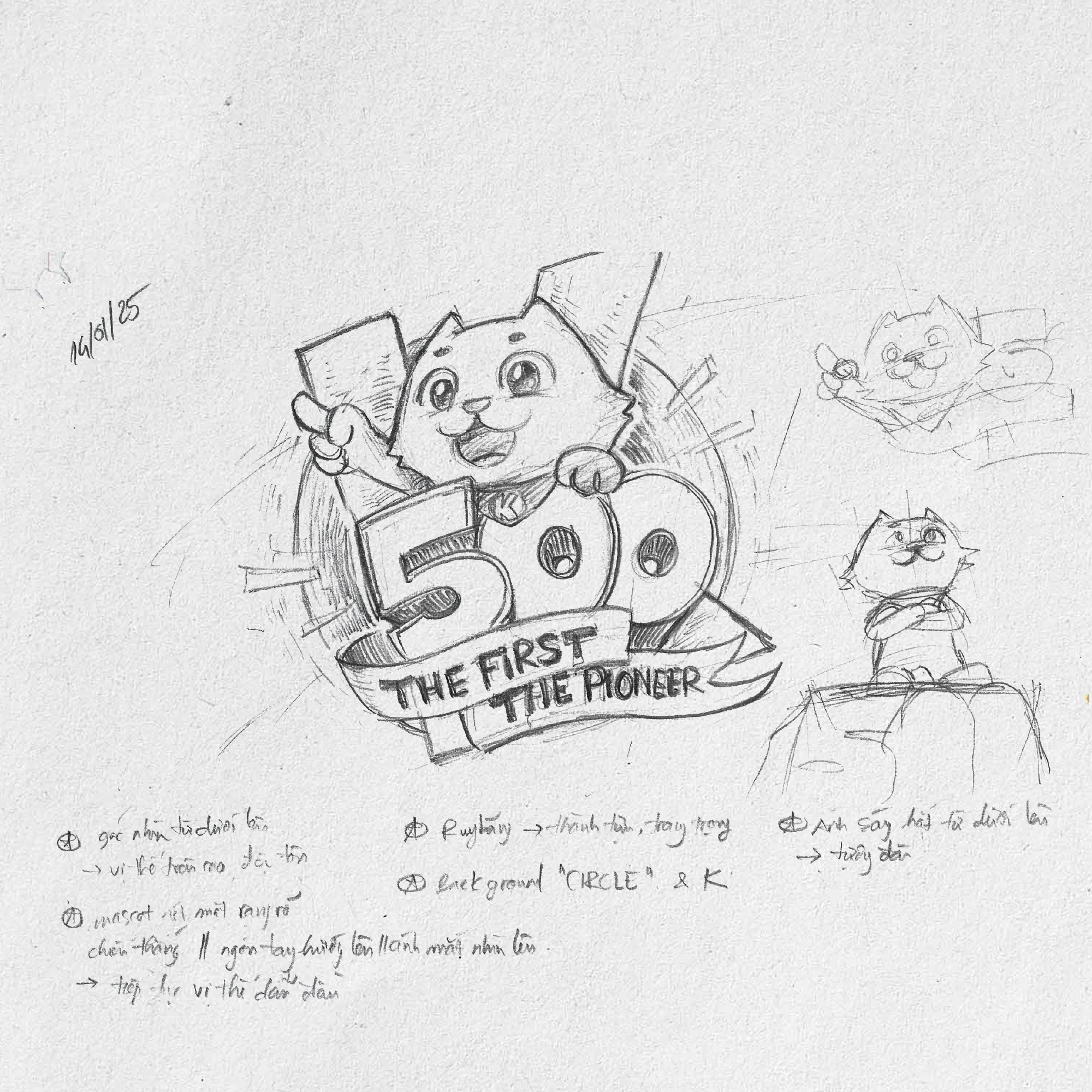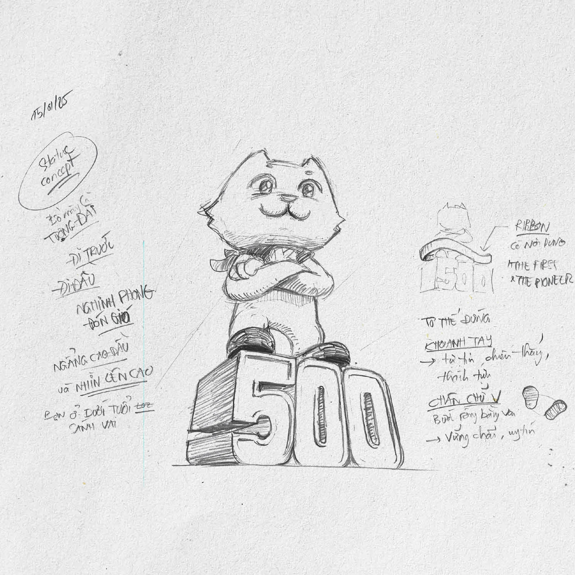 Thời điểm làm concept cho master KV cũng vừa đúng lúc mình lên concept cho mascot của Circle K. Team marketing cũng đã có một kế hoạch lớn để launching mascot mới nhân dịp 500 cửa hàng, và mình cũng tất bật cho một option key visual với hình ảnh mascot và sự kiện 500 cửa hàng cùng là tâm điểm chú ý. Biết đâu được sẽ có một cơ may nào đó chú mascot mới được nhún nhảy cùng ca sĩ trên sân khấu concert thì sao 🧐