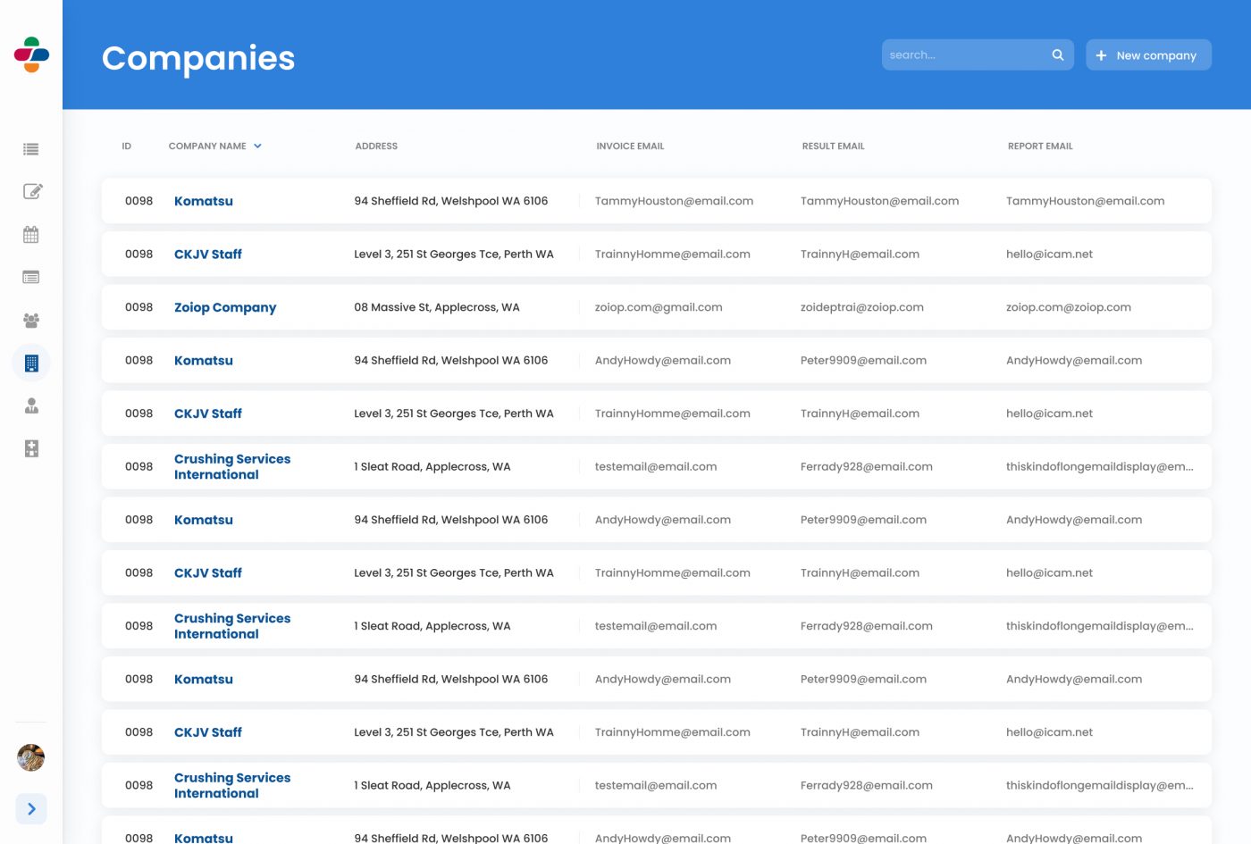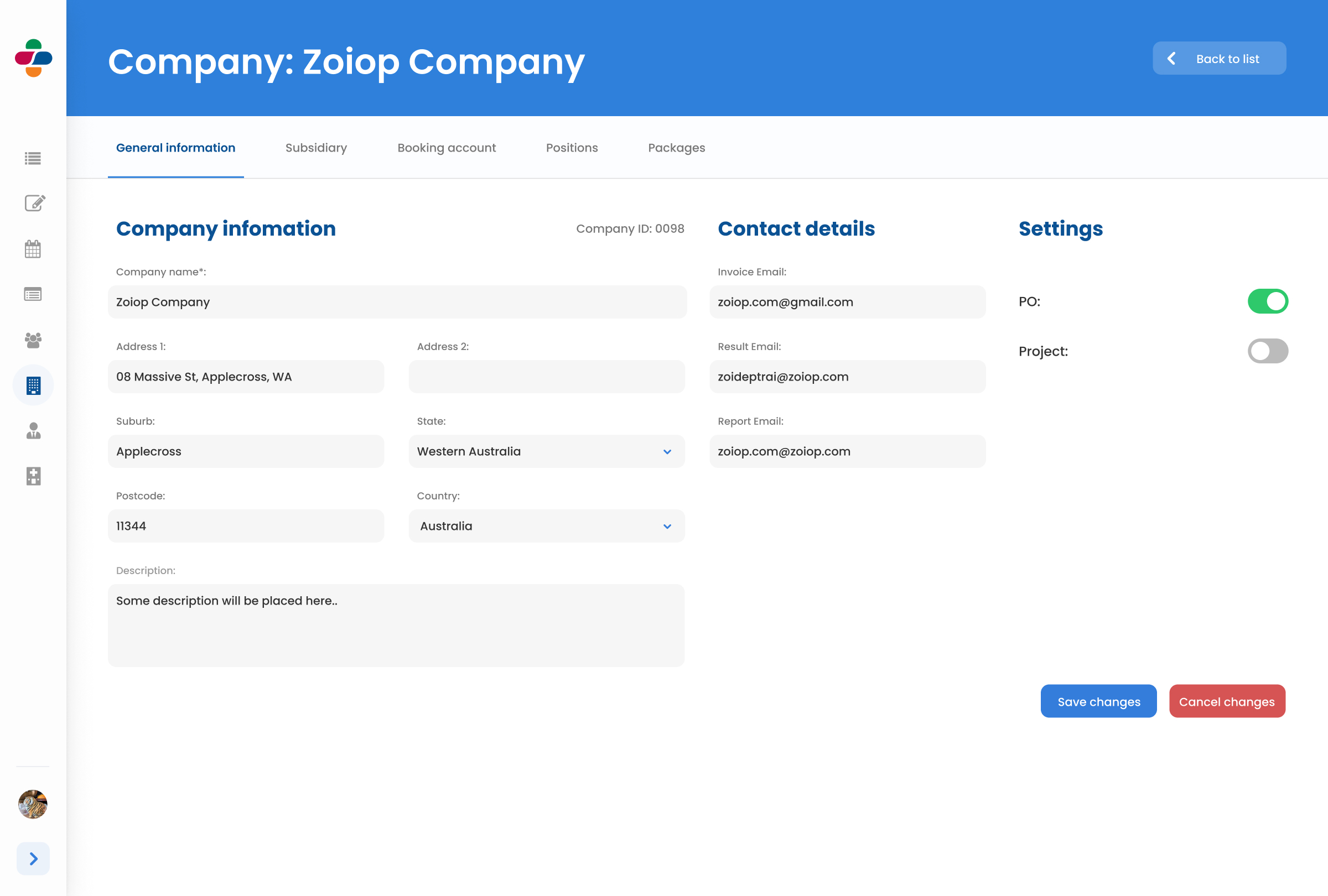 Well, this is a common screen helping us manage the company information. Data are grouped and separated into tabs, and most of them are information and settings which will be used in the Make Booking feature. The differences between FastMed admin account and Company’s account is the list companies screen, only FastMed admin has the ability to access all company’s data in the MOB system.