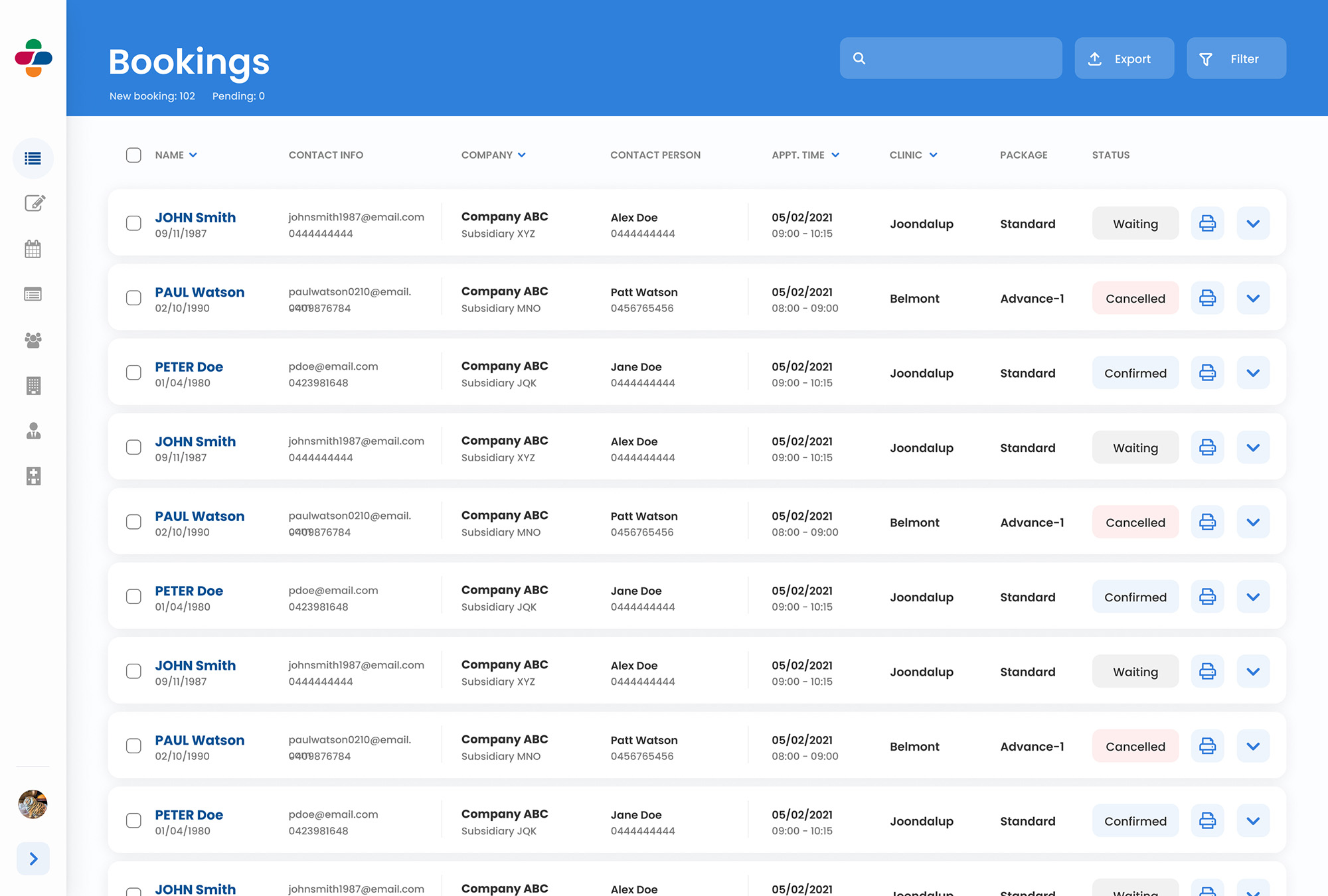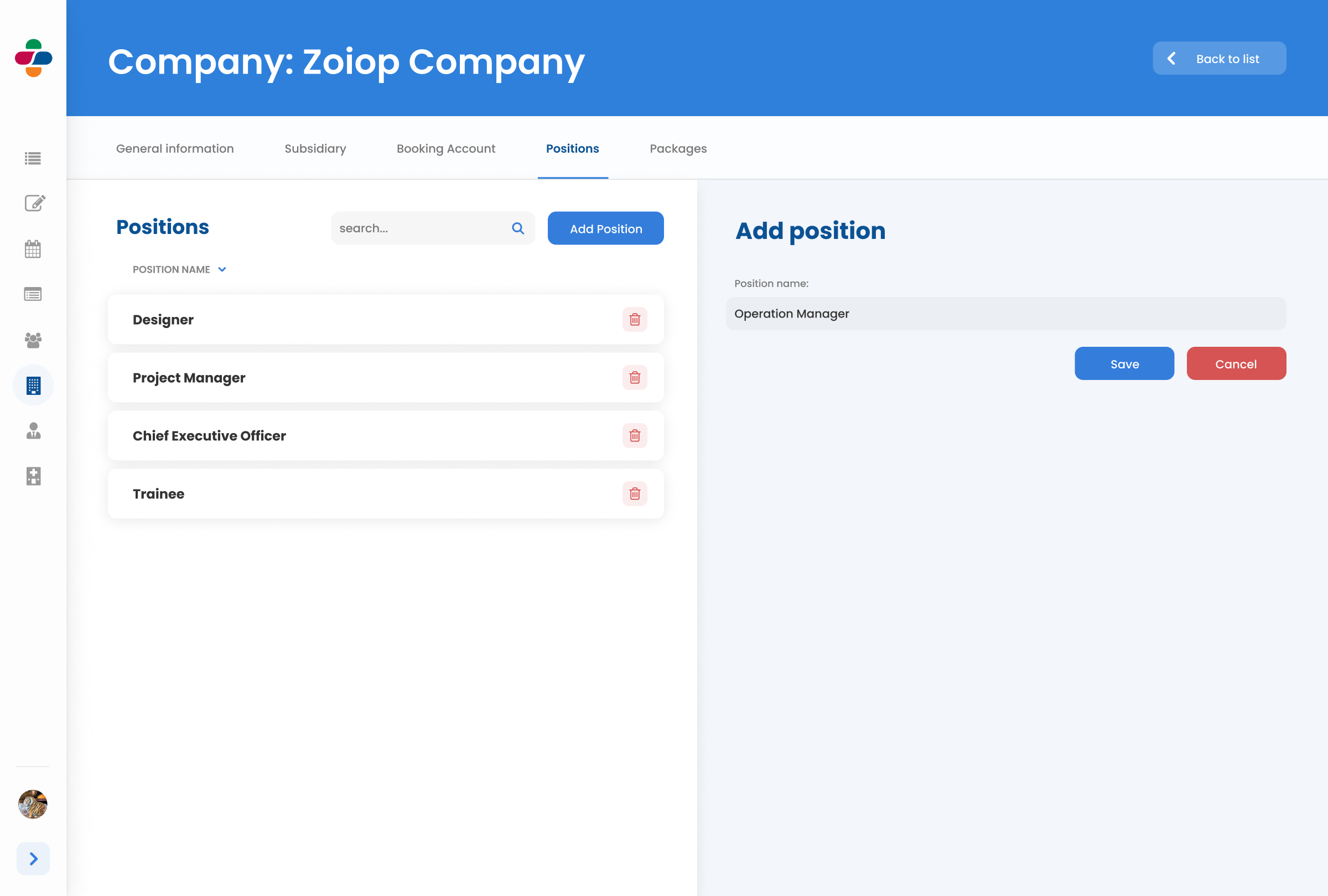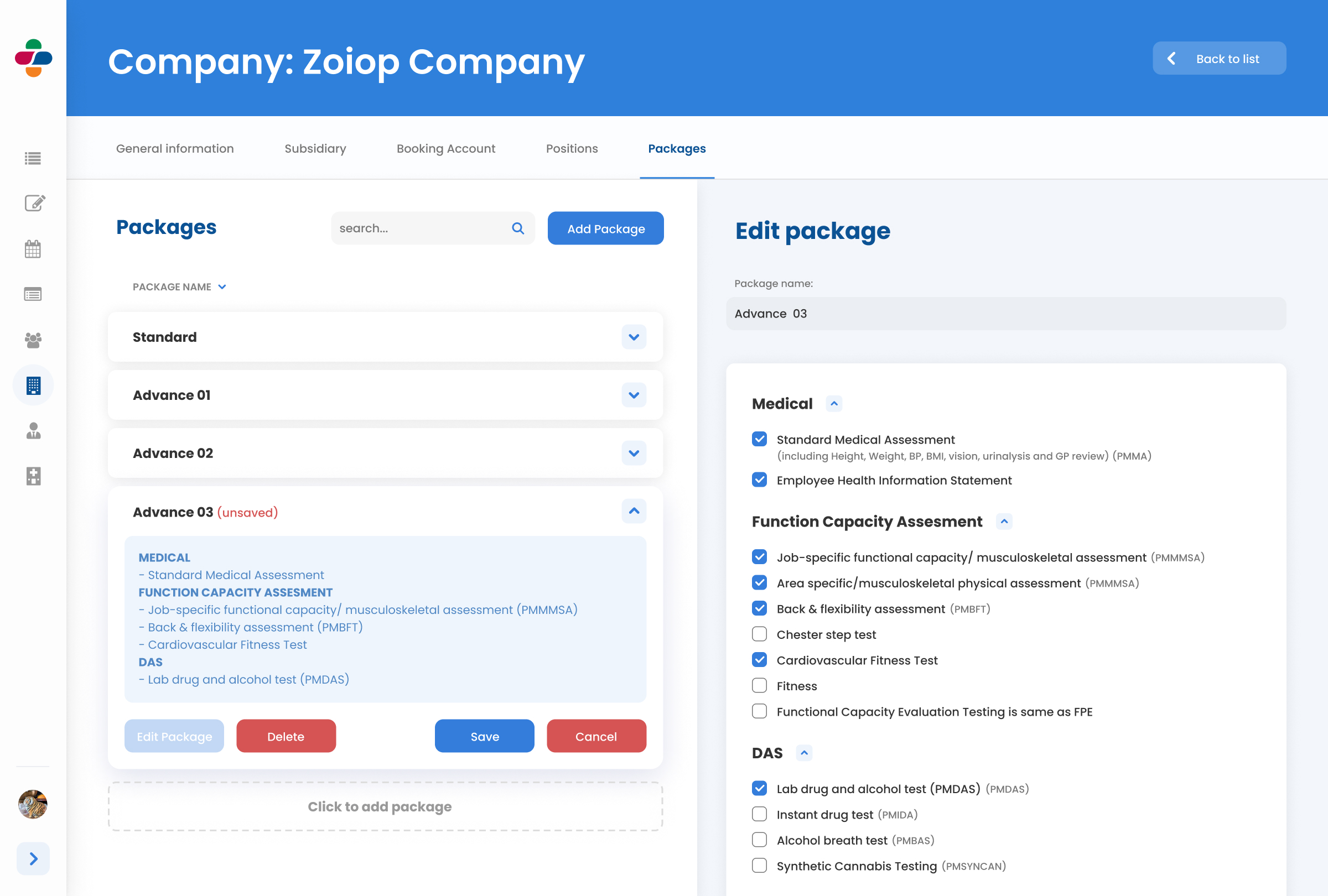 Yeah, let me note something. All screens you have viewed in this entire showcase belong to FastMed admin view with the highest permission. Then, all menus of Companies, Package, Booking Accounts, Positions on the sidebar empower this user role to access all system data. The specific Company screen shows only data from that company. That’s the point!